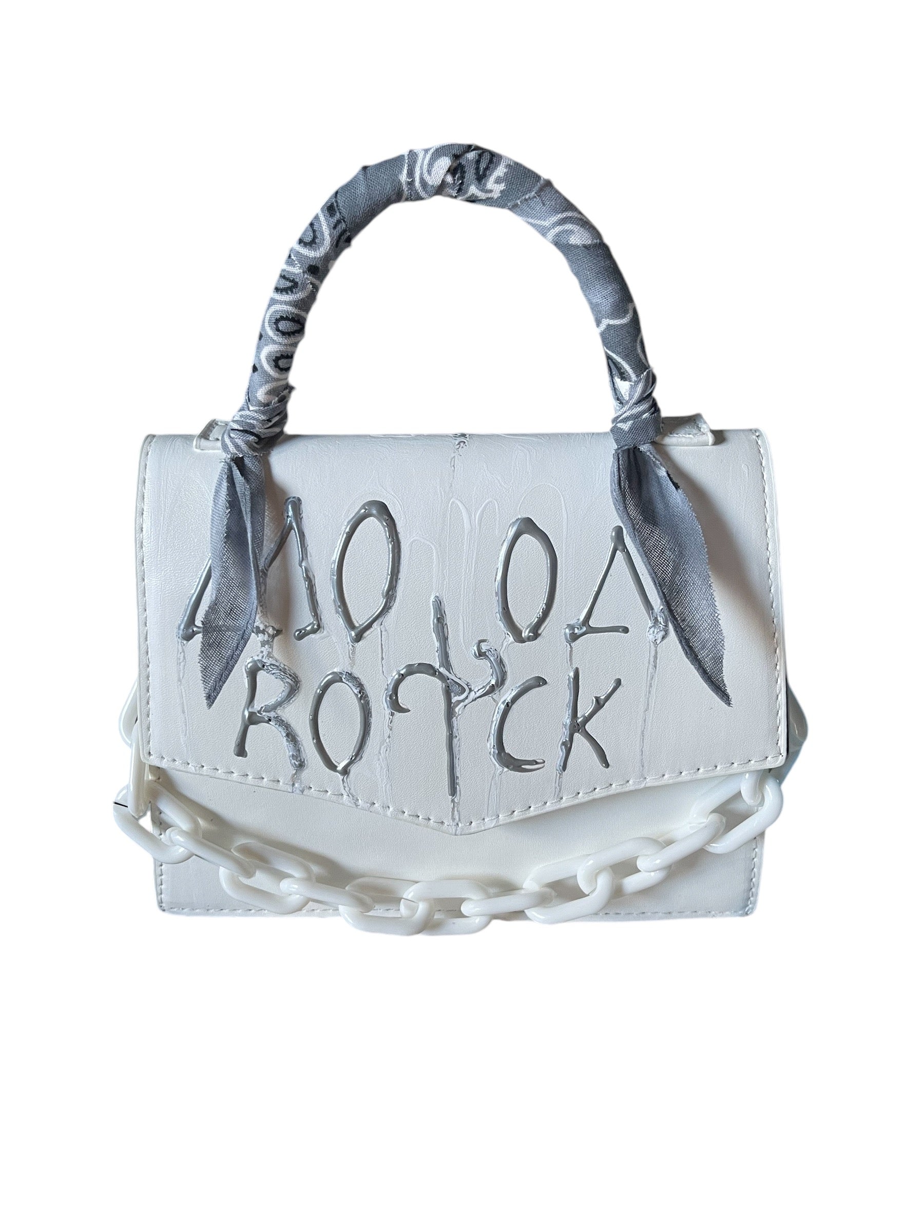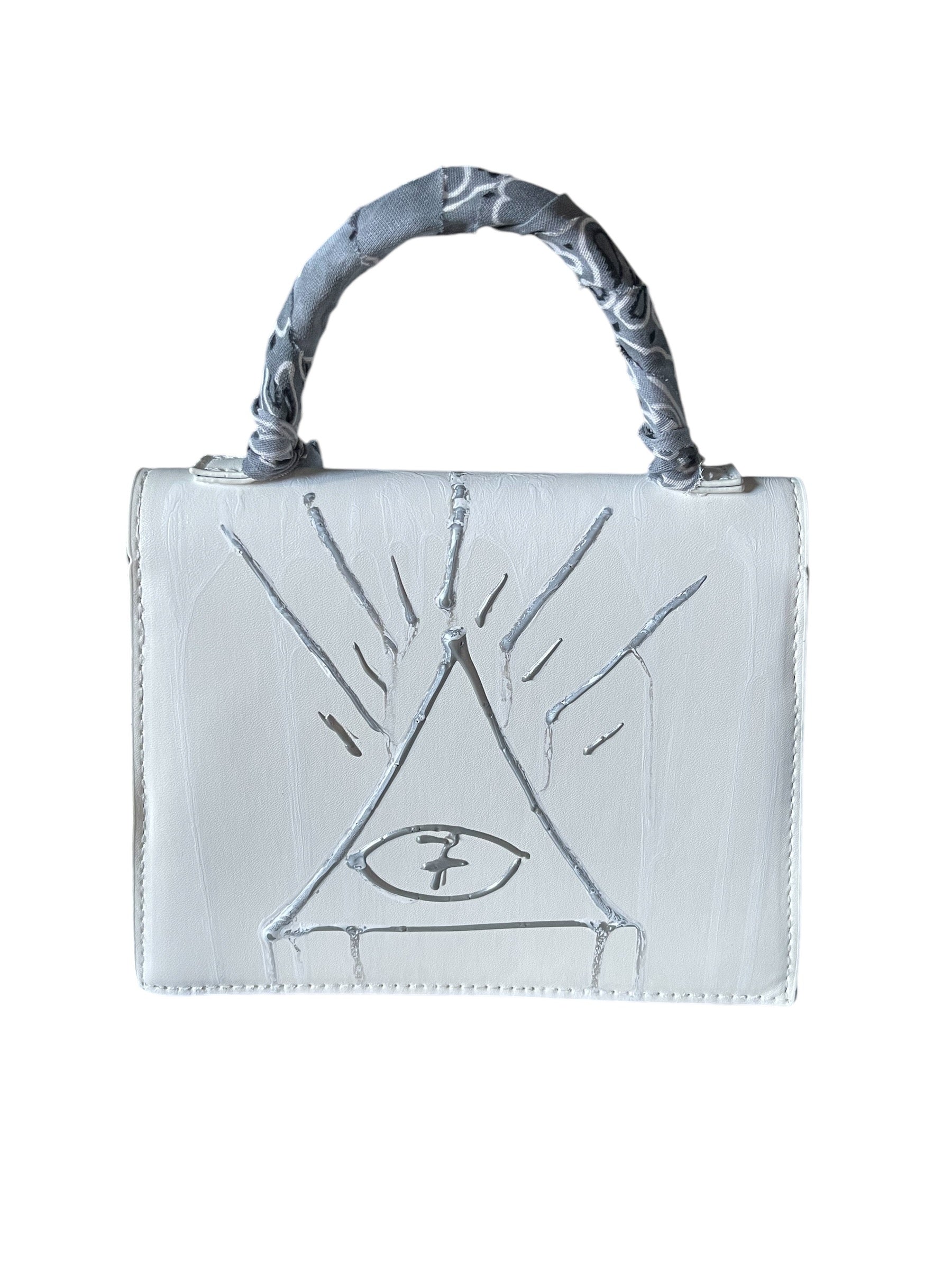 white and grey bandana bag